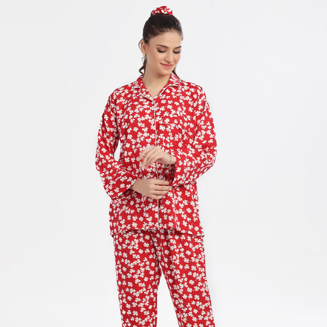 Relax in style with the Silk Secret Autumn Red Linen Pajama Suit. Crafted from premium Boski Linen, this pajama set offers ultimate comfort while adding a vibrant touch to your sleepwear. The soft and cozy fabric makes it perfect for year-round wear, keeping you comfortable all night.