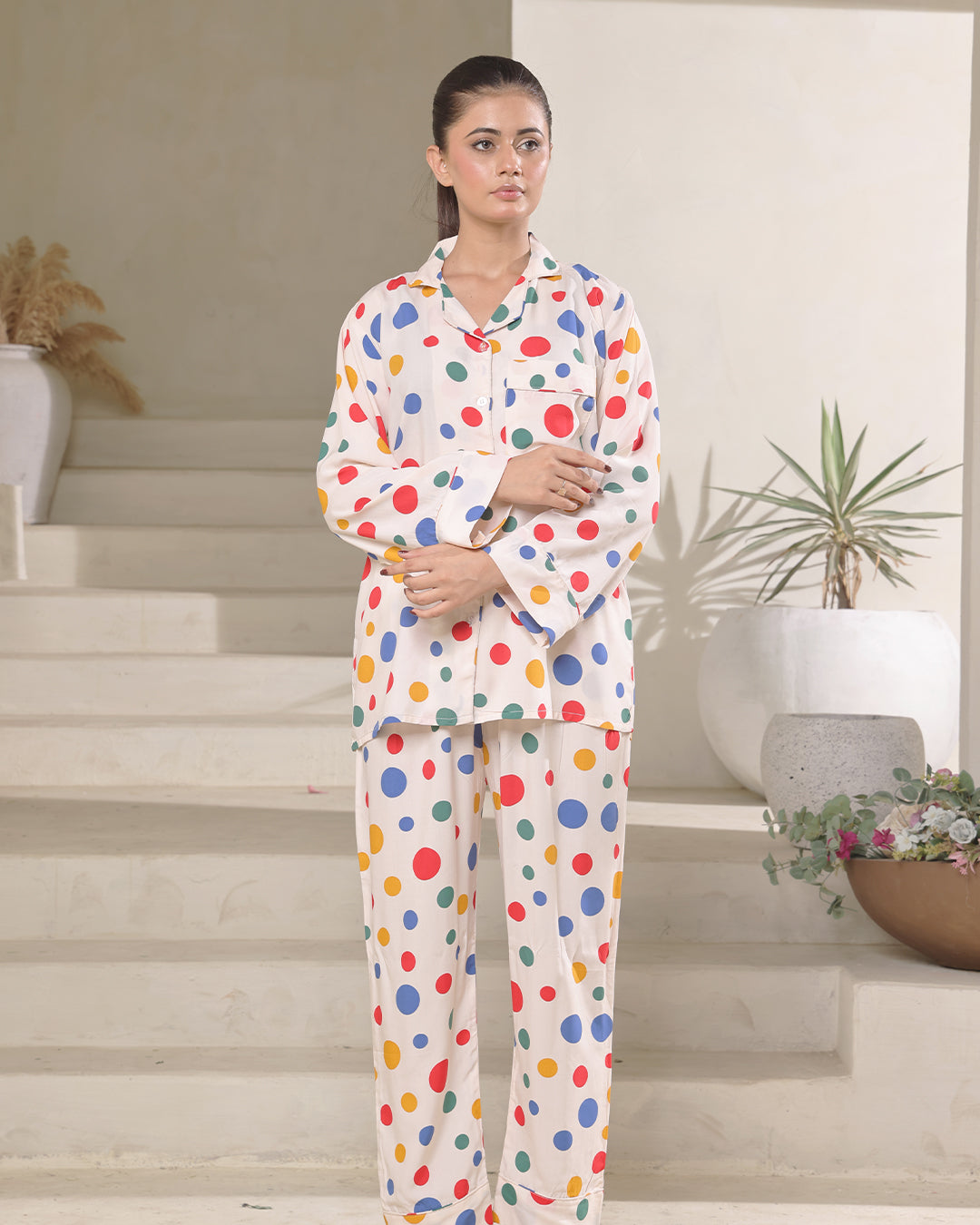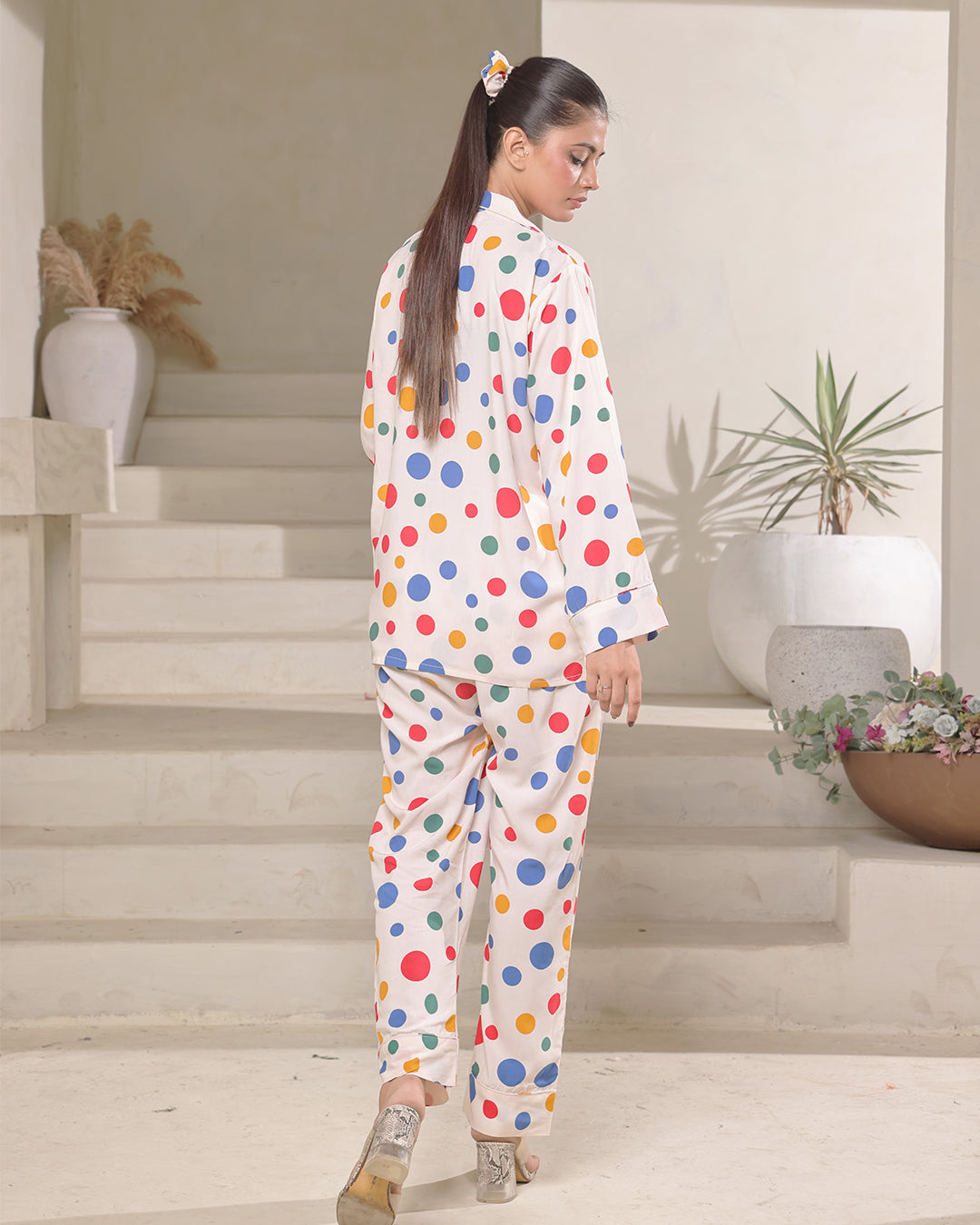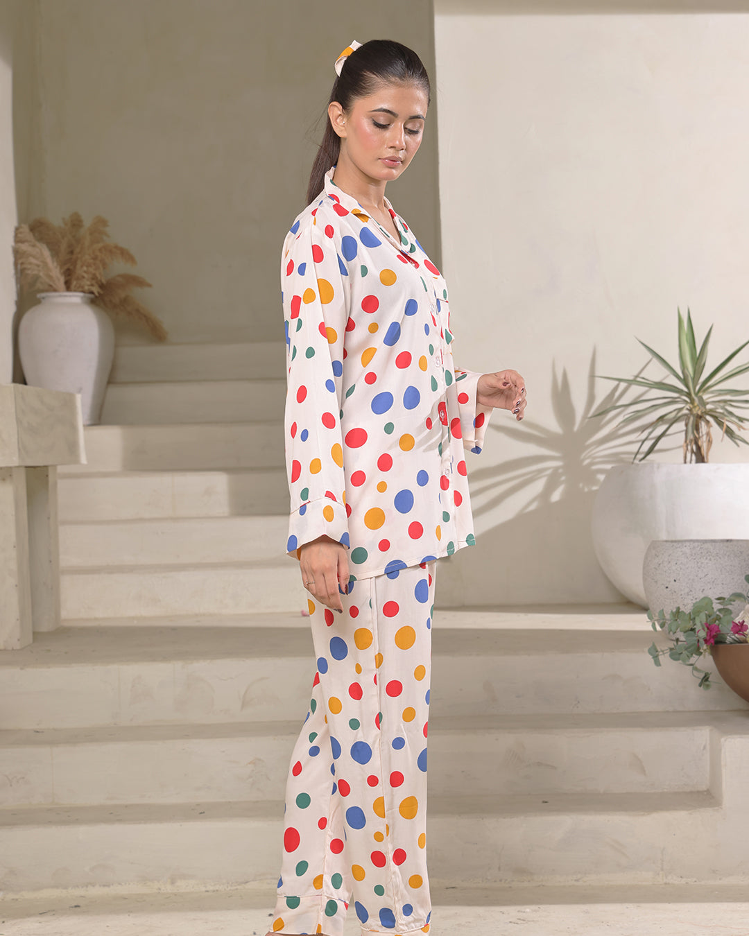 Relax in style with the Silk Secret Dot Delight Linen Pajama Suit. Crafted from premium Boski Linen, this pajama set offers ultimate comfort while adding a vibrant touch to your sleepwear. The soft and cozy fabric makes it perfect for year-round wear, keeping you comfortable all night.