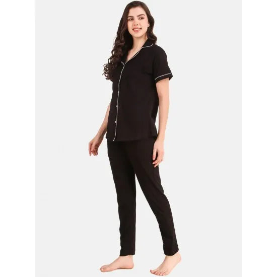 Women's Black Solid Pyjama Sleepwear Set. Sm-805