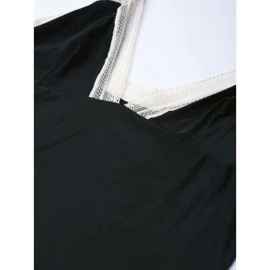 Women'S Black With Contrast Laced Sleepwear Camisole. Sm-156